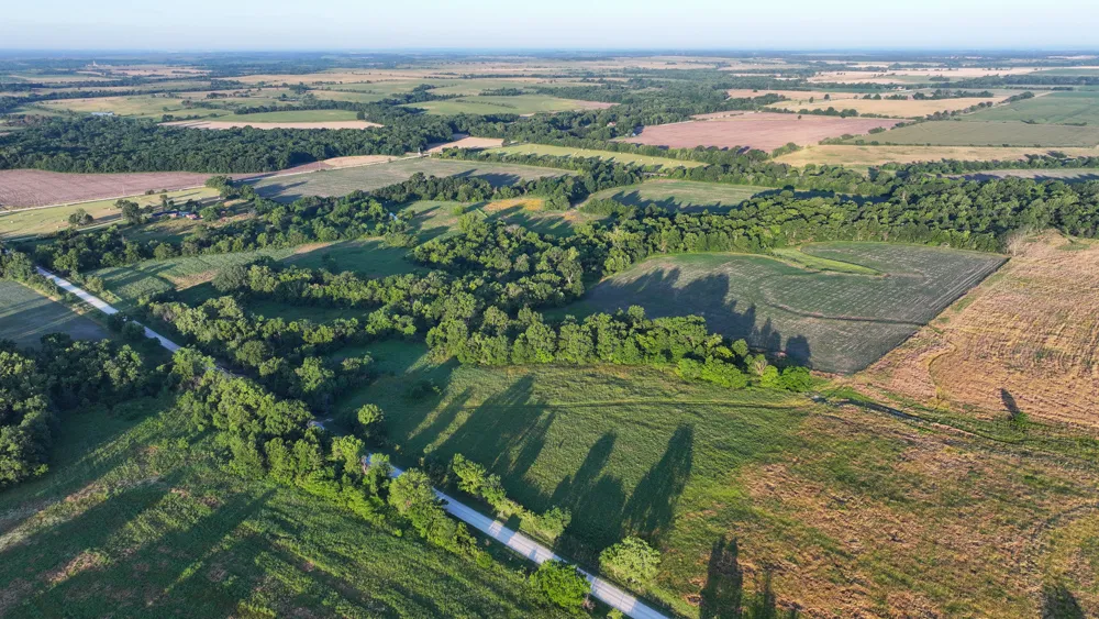 This 116 +/- acre property is located in Woodson County just south of Yates Center, Kansas. The property is full of diversity with creek-bottom tillable fields, warm-season native grass meadows, and hardwood draws for hunting! It has 53 +/- tillable acres actively in production primarily made of Class II Helper silt loam soils with well-kept terraces, waterways, and field edges. The remaining 63 +/- acres consist of warm-season native grass meadows and a live creek lined with mature hardwood timber. The native grass is very clean with a great mix of little bluestem, big bluestem, and Indian grass. The timber has a good mix of red oak, sycamore, hedge, and easter red cedar trees. South Owl Creek winds throughout the property providing year-round water, and a natural travel corridor for wildlife. There is also a large wet weather creek on the property.