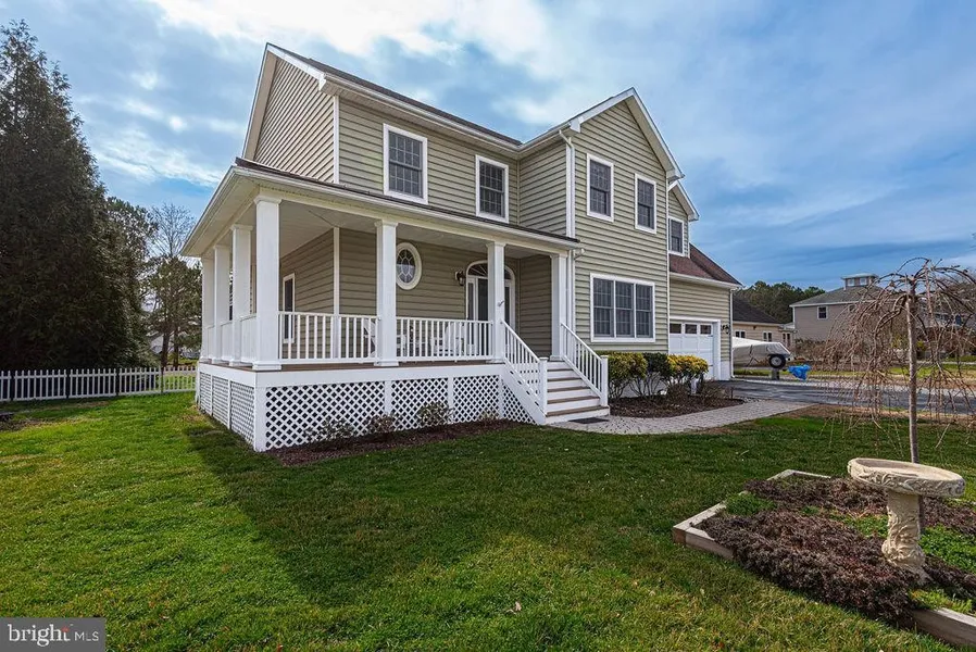 Located just minutes from the Fenwick & OC beaches, this gorgeous custom built home in Holiday Harbor has that WOW look & flow throughout the home, with many wonderful touches & updates, and fantastic entertaining space. You will love the new 17'x15' covered back porch with beadboard walls & ceiling which comes fully furnished and serves as both a screened porch AND as a year round room, boasting vinyl windows and a beautiful firepit that warms up the entire room. This porch leads to the open floor plan of the first floor, which includes lovely hardwood flooring, a living room with gas fireplace, a light filled dining room, a powder room, and a designer kitchen featuring a beautiful granite island, a breakfast bar, a cooktop, a pantry, and stainless steel appliances. There are two large primary bedrooms (both with tray ceilings) in this home, one on each floor. The first floor primary bedroom is full of light, overlooks the large lovely back yard with a small pond, and has a great walk-in closet. The first floor primary bathroom includes a jacuzzi tub, a walk-in shower, and a double sink. The laundry room and large garage are perfectly located, right outside the kitchen. The stately stairway that leads to the second floor overlooks the entire first floor, and brings you to the wonderful large balcony with a family room and office space. There are three more roomy bedrooms and two more bathrooms on this floor, allowing the family to truly spread out and have their own space as needed. The huge private backyard is where the family can hang out in the sun, and a riding mower is included to save you time. You will enjoy the heron, ducks and frogs that frequent the pond at the back of the yard. Storage problems do not exist in this home, because there are so many great storage options in the garage, the backyard shed, and the large floored attic. Holiday Harbor is a great waterfront community on the St Martin River, and the boat ramp is located 3 minutes down the road. Put this home on your tour, you will not be disappointed!