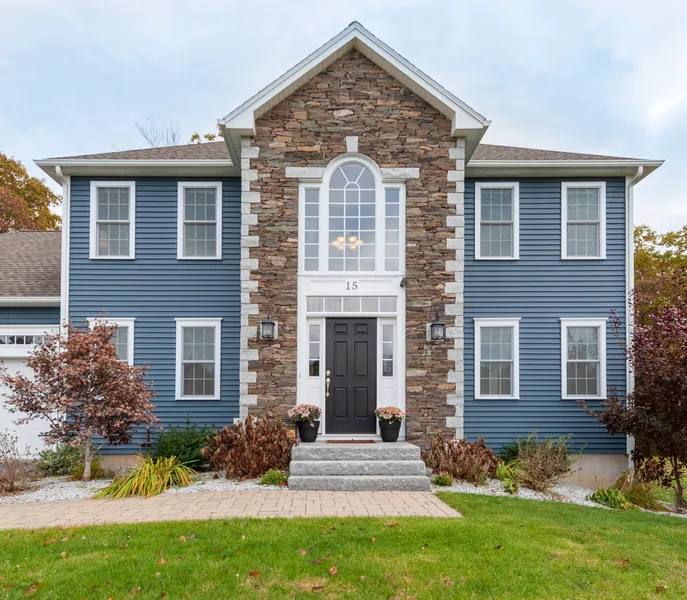 Lovely cul de sac neighborhood with rural feel but close to everything. Open foyer entrance, hardwoods throughout first floor with open concept. Lots of cabinets in spacious kitchen, granite counters with breakfast bar island and stainless appliances. Dining area and living room with gas fireplace and separate formal dining room. First floor laundry and half bath. Second level has nice hallway with sitting area, 3 spacious bedrooms, guest bath, master with ensuite and walk through for great storage over garage. Over one acre lot with nice plantings, elevated deck with sun setter awning. House is set back with plenty of driveway space and turn around. Beautiful stone accent on front of home.