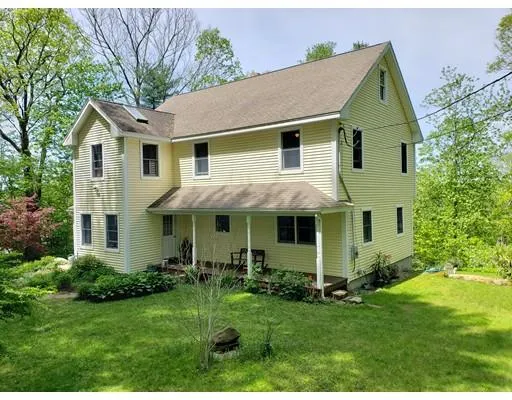 New Braintree Colonial Farmhouse. Nestled on a corner lot over looking the hillside with wrap around deck and front porch to sit and enjoy the sounds of the birds that are everywhere! Fantastic yard with fire-pit and garden area. There are also fruit trees and many plantings for your enjoyment. Stonewalls border some area of the property giving the home added character. A peaceful running brook cascading down rocks forming pools of water for you to sit and meditate in your own special place. There are two sheds on the property for storage, one for gardening and the other you could use as a small workshop. The main house has 3 bedrooms upstairs, 3 full baths, wood floors throughout and is meticulously maintained. The master bedroom has his & hers closets w/seating area & skylights. The basement is finished with a bonus room, bath , workshop and is a walkout. This home on first floor and b...