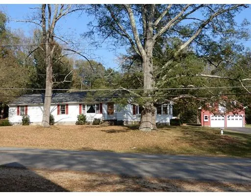Pride of ownership shows in this charming 3 bedroom sprawling ranch home with so much character! Wait until you see the beautiful 1 acre level lot so picturesque. Sit in the sun room or the back deck and enjoy! Kitchen is packed with cabinets with dining area and bay window. Whether you are doing the dishes or having dinner you can enjoy the outside. Dining room offers picture window, wood stove, wood floors and built ins. Kitchen and bathroom have been remodeled over the years both with granite countertops. Spacious living room with french doors out to composite deck recently redone. Huge master and all bedrooms have ceiling fans. Full basement for storage and extra space. Bulkhead was redone to a dog house for easy access out from the basement. 2 car detached garage with work area and storage upstairs. A great home for all! New roof and house just painted! Fantastic location just off Rt 49 and mins to Mass pike, 20 and Rt 9! Seller installing new septic system.