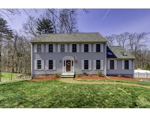 Welcome home to this immaculate colonial in a desirable neighborhood with amazing curb appeal! First floor features foyer w/coat closet open to a living room w/chair rail molding & elegant dining room w/custom moldings, chandelier & hardwood floors. Spacious kitchen includes dining area w/slider to large deck, custom cabinets, granite counters & SS appliances plus hall w/pantry closet & powder room w/1st floor laundry. Open to the kitchen is an expansive great room w/cathedral ceiling & brick fireplace. Second floor includes master bedroom w/large walk-in closet plus updated full bath. Plus three additional bedrooms w/closets and an updated bath w/linen closet. Two-car garage plus unfinished walk-out basement complete the home. A large beautifully landscaped lot & fenced back yard is a definite highlight of the property! Other features include central air, recent roof, newer carpet & completed Mass Save energy audit. Wonderful location convenient to major routes & shopping. A gem!