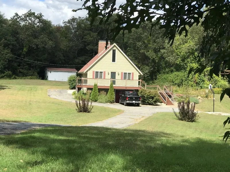 Updated Cape with private location is a must see! 6 room, 2 or 3 bedroom home features living room with fireplace, hardwood floors, cathedral ceiling. Stainless and granite kitchen. Master bedroom suite. Third bedroom or office features a slider walking out to rear deck overlooking the three stall barn with tack room. This home has updated heating, central air conditioning, siding and nice patio for entertaining as well as one car garage under. The large 2 and one half acre lot is perfect for horse lovers or gardeners. This well cared for property won't last!