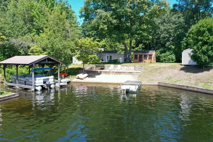 RARE AND WONDERFUL OPPORTUNITY TO OWN PRIVATE RETREAT ON LAKE SHIRLEY! The location of this home cannot be beat! Private 1.75+ acre lot with 2 docks, boat house, screen house and private sandy beach area. Seller's have made what once was a camp into a family retreat the ranch style home has open floor plan designed to bring the outside in. Living room with vaulted ceiling and MBR allow spectacular lake views sliders open to water. Updated EIK, 2nd BR and updated FB completes interior. Exterior green space shines! Level green space,screen room,10+ parking in circular drive, hardscaping to enjoy manicured beach area. WAIT a 2nd property? YES sellers built a 3 car detached garage with finished loft space. Perfect guest retreat or home office with private deck, entrance and green space. This home sits on a peaceful dead end street. Use the combined property as the current seller does or brin...