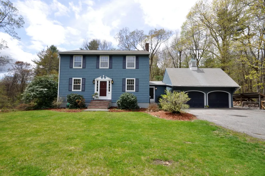 This lovely 4 bedroom colonial home is located on a pretty country road in charming Sterling. The property's beautiful one acre lot offers a wonderful opportunity for gardening, fire pit nights, play area, outdoor dining & summer relaxation. Handsome new front stairs welcome you into this classic colonial with a formal living room (accented by a wood stove), dining room with hardwood flooring & sunny eat-in white kitchen with new stove. The back entry & laundry area open to another room ~ perfect for an office space, music room or playroom area. There is also an updated half bath on the main floor. Upstairs features 4 bedrooms with hardwood flooring & full family bath. Plenty of storage space in the full basement plus an attached 2-car garage with walk up loft. Neutral decor throughout. This beauty abuts conservation land & there is a wooded path that goes through & around the backyard ~...