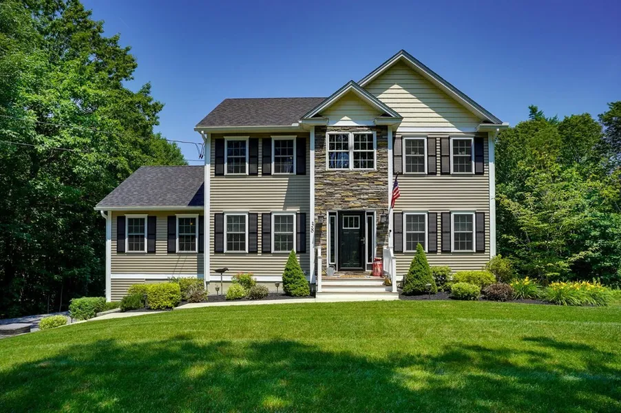 The minute you step through the front door, you are going to want to call it home. Nestled on over 2 acres of land, this 3 bedroom, 2.5 bath colonial has it all. Build in 2015 the open floor plan has a wonderful flow for all your entertaining needs. The kitchen has an abundance of counter space, 7 foot island, SS appliances, breakfast bar and eat-in area with slider to a large deck. The front to back family room, right off the kitchen has vaulted ceilings and a gas fireplace great for those cool Fall evenings. There are hardwoods throughout the first floor and both the living room and the dining room have wainscoting. A half bath/ laundry area complete the first floor. The second floor has a large master bedroom with walk-in closet and bath with double vanity and 2 additional bedrooms. The manicured yard has additional storage space in a Kloter Shed, pergola, accent lighting and irrigation system. Close to major routes and the commuter rail. Showings start Thursday July 22 at 2:00