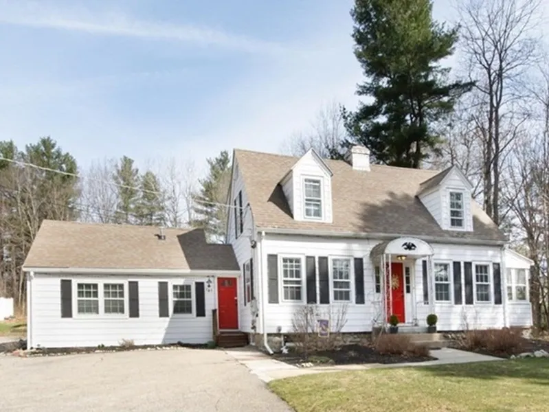 Classic Mid Century New England Cape is more than meets the eye. Set on just over 1 acre affording an abundance of outdoor space and mature trees. First floor Master Suite with vaulted ceilings, hardwoods and a newly renovated master bathroom perfect for down-sizers, an in-law suite, or anyone thats looking for one floor living. First floor boasts an updated eat-in kitchen with stone countertops, and stainless steel appliances. Kitchen leads to dining room and a front-to-back living room with fireplace as well as a 3 season porch perfect for a quiet retreat or could be upgraded to a home office. Second floor has two ample bedrooms with built-ins and 2nd full bath has been renovated with new tile floor and surround. Freshly updated finished basement room with fireplace, heating zone, and custom built-ins, adds almost 400 sq. ft of living space for playroom, home office, or family room. Ba...