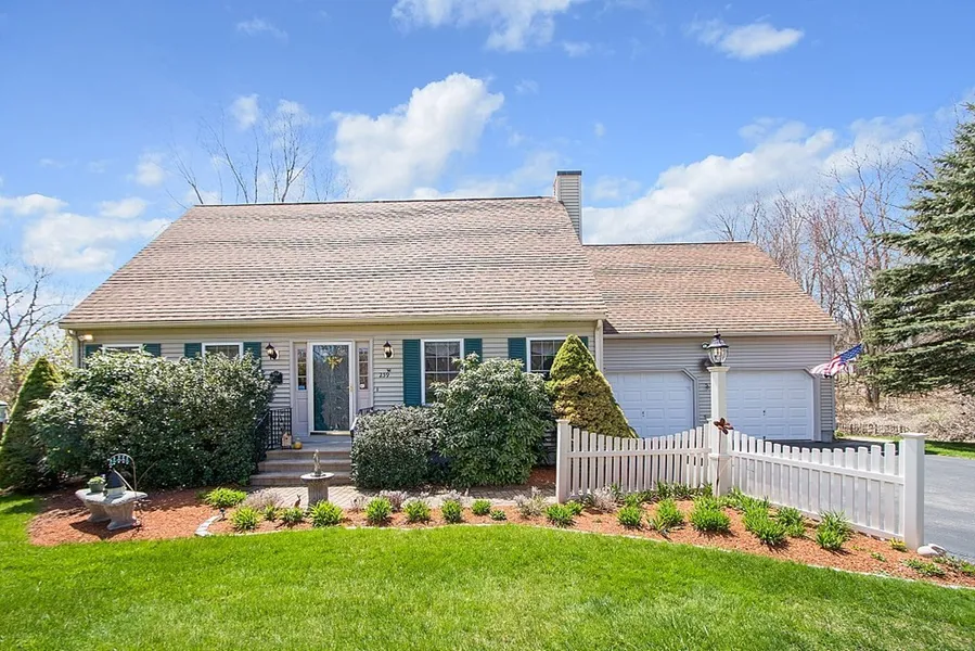 Meticulous, picture-perfect cape set against 300+ acres of conservation land. This home shows pride of ownership from the pristine yard, patio with pond and the care of maintenance. Mature landscaping and all the features you would want in a private backyard with beautiful patio, stonework and two sheds. Step inside and find a sunny, warm entrance that leads to your open concept kitchen and dining area. Quartz counter tops and hardwood floors make this area perfect for get togethers. The sunroom has large windows, cathedral ceiling and a deck off the side. The first-floor bedroom has access to the bathroom and a walk-in closet. Upstairs you will find two more large bedrooms with plenty of closet space. 2 car garage offers storage and side and rear doors to access the yard. The walkout basement is just waiting to be finished with high ceilings and plenty of room to make more living space....