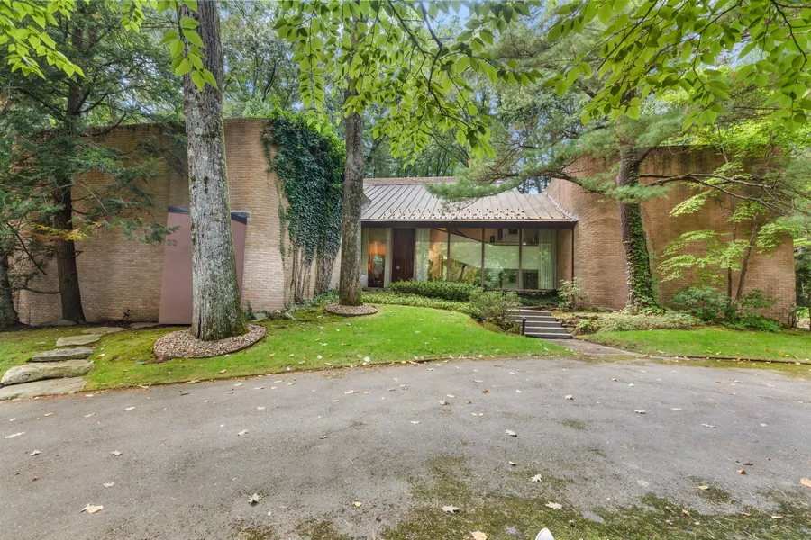 Every once in a while a spectacular home comes along that exudes beauty and distinction like no other. Introducing 33 Aylesbury Road, located in the coveted Salisbury Street area. This 5,400 sq ft mid-century modern was custom designed by Irwin Regent. You'll soon realize that no detail was spared in the construction, layout and decor: from the brick exterior to the elegant rounded walls, luxurious hardware, custom flooring and various built-ins. Step into the breathtaking formal living room with 16 ft ceilings and oversized slider doors letting nature in. The family room is exquisite with the custom built-in bar with brick accent wall and built-in entertainment center. Oversized kitchen with modern high gloss cabinetry, granite/Corian countertops and updated appliances. Amazing office space with updated bath. The primary bedroom, located on its own level with luxurious bath, abundance of closets and dressing room. Three comfortable bedrooms and 2 baths on 2nd level. Relax by your own brook/pond or entertain, this home has it all.