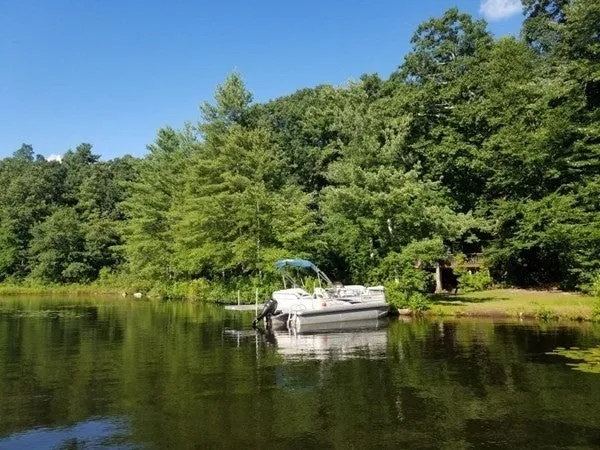 Baker Pond Waterfront home has 154 feet along the shores of this "Great Pond" .93 acre lot provides peaceful privacy. Detached, 2 story-2 car garage has power & offers many options for finishing or possible "a.d.u." space. Open fireplaced LR/DR & kitchen are surrounded with windows & slider to wrap around deck. Recent FHA/oil heat, propane hot water tank 2009, well is 2023, Andersen windows 1985. The property has a long, gravel drive that winds past the garage building & then down to the house, where there is plenty of parking. Ramp to the front door & wrap around deck! Title 5 is buyers' responsibility but seller may facilitate inspection w/ acceptable offer. There are motor boats on the pond & big fish, from what people have told me! Lincoln point is a dead end road. Laundry was added to 1st floor BR. 2nd fl BR has an exterior door that needs steps. Basement has garage door to lawn. Pr...