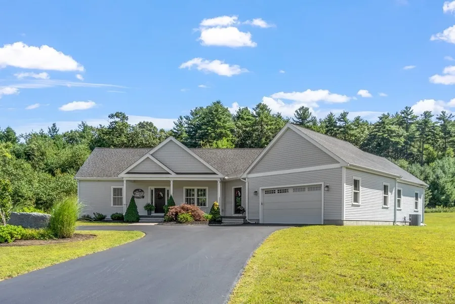 This impressive contemporary home offers single-level living at its finest. Vaulted ceilings and beautiful glass sliders with transient windows bring natural sunlight into the living spaces of this home. Living room with custom crafted gas fireplace is a focal point of the open living area which also includes a designated dining room off the entry hall. The heart of this home is the gourmet kitchen with stainless Bosch appliances, high end finishes, oversized granite island, double wall ovens and a breakfast nook that overlooks expansive grounds, thoughtful plantings, heated spa-fed pool and patio with propane hook up for possible gas grill/outdoor kitchen, all bordered by mature landscape creating natural privacy. Expansive, unfinished basement with high ceilings awaits your creativity for additional living space. All of this on over four acres of land on a cul-de-sac. Welcome Home!
