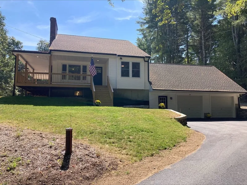 Showings beg Tue 9/17 please do not go on property with scheduled showing, Recently renovated nothing overlooked , off the beaten path if you are looking for privacy this house has plenty of it, set off the road, massive rear yard great for entertaining and could be used as small farm. Large over sized garage 24'x32’, there is also a large 16’x32’ unfinished area over garage with separate entrance perfect for at home office/daycare etc, large over sized wrap around farmers porch with recess lighting, inside you’ll find an updated kitchen with quartz counter tops stainless steel appliances and hardwood flooring throughout, electric baseboard heat also heat/ac pump and gas fireplace for plenty of heating options first floor master bedroom with full master bath, upstairs two generous size bedrooms and full bath, plenty of storage, the basement has built in work bench and could easily be finished for more square footage, double flu allows for wood/pellet stove hookup in basement as well