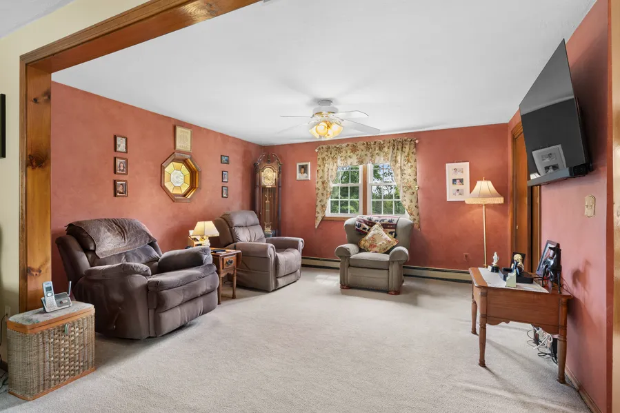 Nestled just off the town center of a highly sought-after, tranquil New England town, this charming Colonial-style home exudes classic charm.The exterior, characterized by its crisp white siding and black shutters, is complemented by a nicely landscaped yard. Entering the home, you'll be greeted by sun-filled rooms with a classic floor plan of a colonial style home, living room,with a brick fireplace on one side and the formal dining room on the other. The heart of the home is of course the kitchen, which is large enough to enjoy meals to together or supervise homework while cooking. The family room is just off the kitchen and flows into the living room.Use separately or combine them for a front to back family/living room. Upstairs offers four generously sized bedrooms all light and bright. 2-acre lot provides enough space for all types of recreation and outdoor living space. Make a few changes to loving maintained home will make it yours.Close to major highways, shopping and schools