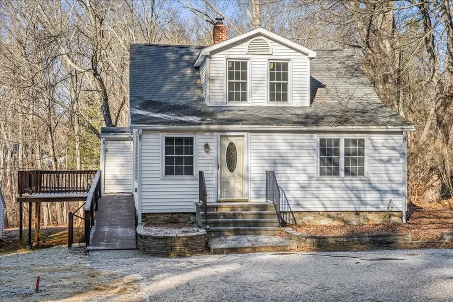 Move right in! Must see, very cute 3 bedroom cape. Just 10 mins to Rt. 395, 20 mins to MA Pike. Convenient 1 Level living. The first floor offers a kitchen, pantry, living room, main bedroom, full bathroom and stackable laundry. Brand new stainless steel appliances in the kitchen. The pantry has lots of shelving for extra storage and a nice cedar coat closet. Some rooms have brand new luxury vinyl flooring. The 2nd floor offers two more bedrooms and a half bath. This home has replacement windows throughout. A stream and conservation land behind the property. There is a side yard that is easy to maintain and a nice deck to enjoy the outdoors. There is a full, unfinished basement, and a detached, usable garage with electricity and a workshop area. Low taxes for affordability! Brand new septic just installed. Dudley beach for summer fun. Close to Nichols College. Residents can attend Shephe...