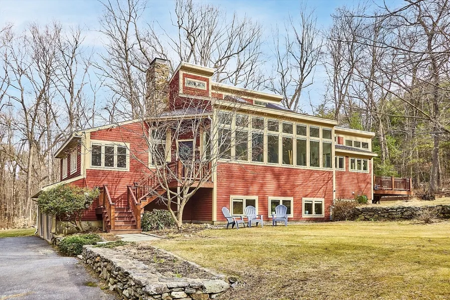 Discover your dream home, nestled on over 3+ serene acres, this exceptional property offers modern updates and natural beauty. The first-floor primary suite features a private deck for peaceful relaxation. With two additional bedrooms, three full baths, and updated kitchen and baths, this home blends comfort and style. The floor-to-ceiling stone fireplace adds a cozy charm, while the newer roof and skylights ensure durability and natural light. The finished basement provides flexible living space, and the large, flat yard invites outdoor enjoyment. A detached barn offers endless possibilities for hobbies, storage, equestrian use and more; while outdoor enthusiasts will love the property's easy access to trails. Whether you're relaxing indoors or enjoying the abundant outdoor space, this property delivers a unique blend of modern and practicality. Don't miss the chance to make this exquis...
