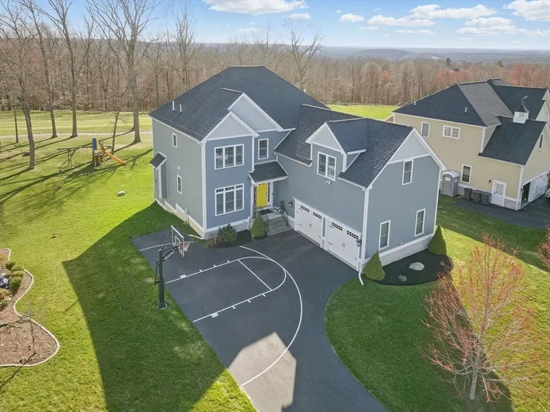 Located in the sought-after Highfields Golf & Country Club, this stunning colonial sits on a premier lot with golf course views and beautiful sunsets. A grand two-story foyer and sweeping staircase welcome you inside, where gleaming hardwood floors flow throughout. The upscale kitchen features granite counters, subway tile, and black stainless appliances, opening to a family room with a gas fireplace. Step out onto the composite deck and enjoy the level yard and scenic views. The formal dining room offers crown molding, wainscoting, and French doors, while the private home office features custom millwork. Plantation shutters and elegant light fixtures add charm throughout. The expansive primary suite includes two walk-in closets and a spa-like bath with double vanities, soaking tub, and tiled shower. Three additional bedrooms and a full bath with double vanity complete the second floor. ...
