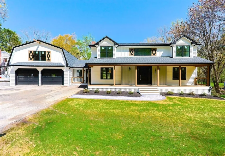 Stunning studs-out renovation, this 5 bed, 3 full bath gorgeous Modern Farmhouse meets all the 2025 Energy-Efficient Building Standards. This amazing home blends style and functionality with luxurious high-end finishes. Gourmet kitchen, quartz countertops, large walk-in pantry, slider to oversize 16x14 composite deck, perfect for entertaining, grilling, relaxing with a morning coffee, or enjoying quiet evenings under the stars. Open floor plan, fireplaced living room with soaring ceiling and eye-catching balcony on upper level. Gleaming hardwood floors and light filled rooms throughout. Primary en-suite has huge walk-in closet/dressing room and oversize bath w/double-rain shower. Four additional good-size bedrooms, two on first floor. Large 2-car garage has huge unfinished second floor for future expansion or storage. Unfinished basement offers future potential. Close to major routes, sh...