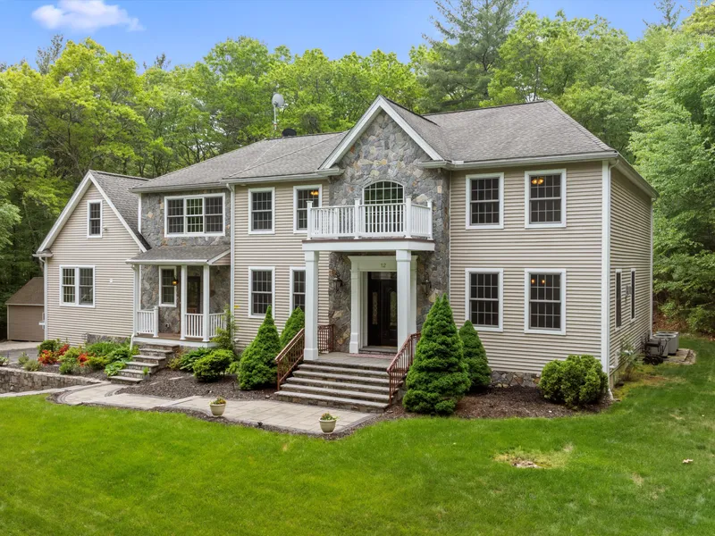 Gorgeous custom-built colonial with over 5,000 square feet of thoughtfully designed luxury living set on private 3+ acres. From the moment you step into the grand two-story foyer adorned with granite flooring, you’ll be captivated by the attention to detail and luxurious features throughout, including nine-foot-plus ceilings and gleaming hardwoods. Spacious family room is a true showpiece with stunning floor-to-ceiling stone fireplace and interior balcony. The expansive gourmet kitchen is a chef’s dream, boasting huge island with vegetable sink, abundant counter space, cabinetry, a gas cooktop and stainless steel appliances. An inviting eat-in area is bathed in natural light with numerous windows. Have you been searching for multigenerational space? Here it is! First floor, open concept guest suite with full bathroom and exterior access. Upstairs, spacious primary suite with large walk-i...