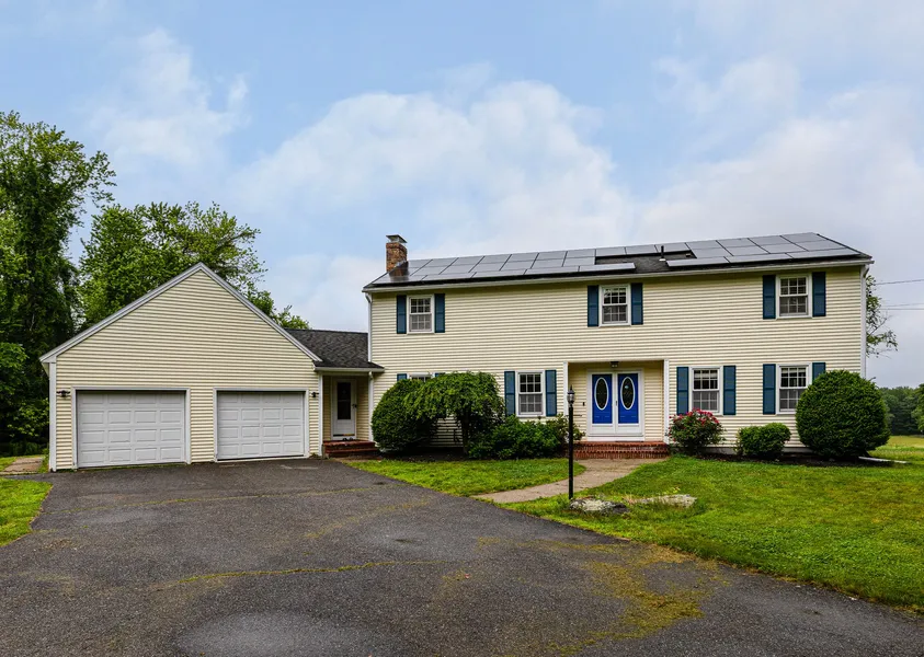 This home sits at the top of Wheeler Road on a level lot just up the street from the Grafton Community Barn & Harvest Project, and abuts a 40 acre parcel under Chapter 61A zoning.. It's a magical location. A long, tree-covered driveway leads to the clearing where the house is sited. Custom colonial w/3,500 square feet of living space between the main house and the finished basement. On the first floor you'll find a front-to-back fireplaced family room w/sliders to deck; an eat-in kitchen w/peninsula and walk-out bay w/breakfast nook; formal din room; a front-to-back liv room; office; two half baths. Hardwood throughout most rooms. Second floor contains four bedrooms, including the master suite w/walk-in closet and private bath. Lower level has storage and a large bonus room w/rubber mat flooring. The 2-car garage has a walk-up attic. Gorgeous lot w/I. G. pool and yard for the kids. Vinyl sided for easy maintenance. Solar panels.