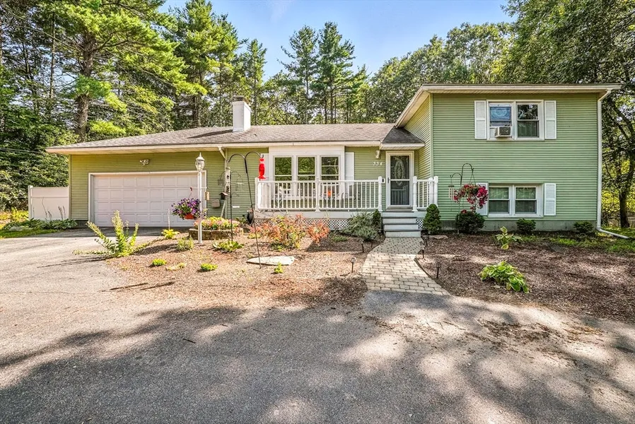 Come see this unique raised ranch on a private wooded lot with fenced in back yard. The large eat in kitchen has plenty of cabinets, granite tile counters & an island. The living room is bright, spacious and has a gas fireplace to keep you warm in the Winter. Upstairs are 2 good sized bedrooms with hardwood floors and full bath. Downstairs is the main bedroom and private bathroom with shower, jacuzzi tub and cedar closets. The finished lower level is great for an office or playroom. The large one car garage and shed have plenty of space for storage. Enjoy sitting on your front deck or in the back yard on the patio during warm weather. Great commuter location!