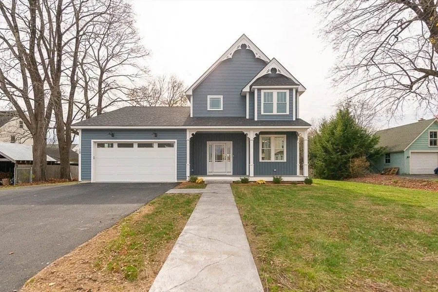 Be the first to own this stunning Modern Farmhouse Colonial, newly completed & ready for immediate move-in! Thoughtfully designed with timeless style & modern comfort, this 4-bedroom, 2.5-bath home showcases 9-ft ceilings, central AC, & hardwood floors throughout the main level. A charming farmer’s porch welcomes you in, leading to a bright layout featuring a first-floor office/bonus room with pocket doors, dedicated laundry room, & a primary suite with custom-tiled walk-in shower & dual vanity. The beautiful kitchen boasts quartz countertops, dual-toned shaker cabinets, & a large island open to the dining & living room with recessed lighting & slider to the back yard spacious patio. Upstairs, a central family room sits between three bedrooms & a full bath. Over 1,100 sq. ft. of unfinished basement space offers endless potential. All set on a beautifully landscaped ¼-acre lot in a prime in-town location close to local shops & eateries! Showings start now – don’t miss out!