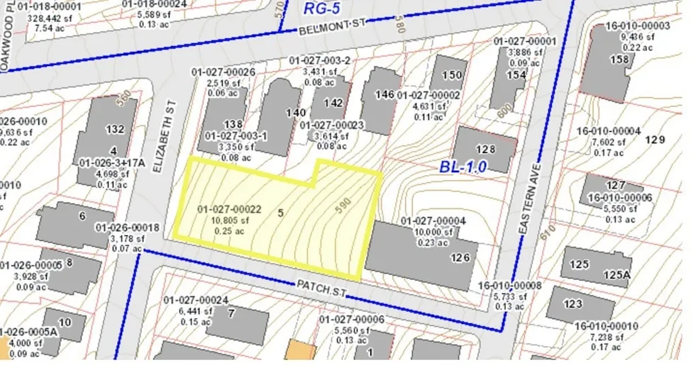 Research Parcel InformationBelmont St (Rt 9) to Elizabeth St. Land is corner of Elizabeth and Patch