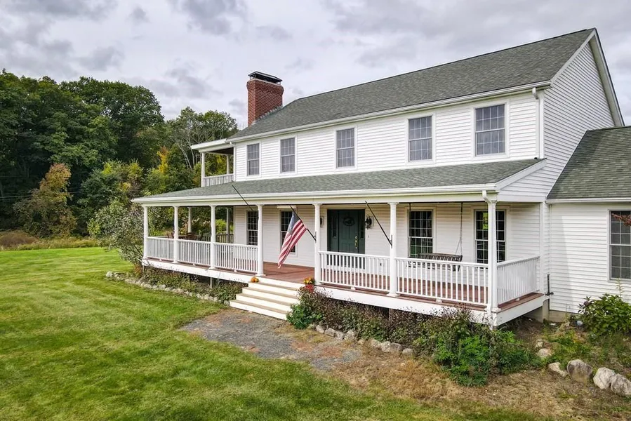 Drive up to your new farmhouse home complete with wrap around cedar porch and rolling fields! This 2400+ sf 4 bed 2.5 bath home sits on almost 9 acres with a large back field, fruit trees, ready to plant garden & a frost free hydrant for convenience. Inside you will find hand crafted pine flooring flowing throughout 1st & 2nd floors, an updated kitchen with soapstone countertops, island & sitting area as well as a warm cozy living room with a wood stove, formal dining room and laundry in the 1st floor bath. Upstairs you have your master bedroom/bath that opens to a walk out porch, along with 3 beds and another full bath. The back deck is a lovely getaway with a firepit and hot tub ready for a fall evening with friends and family roasting smores! The 2-car garage and outside structures add additional storage or homes for your animals. The partially finished basement includes a sauna, tann...