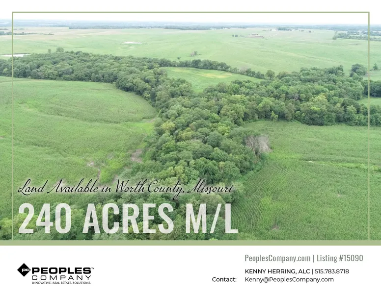 Presenting 240 Acres Worth County, Missouri. This combination farm offers great income as well as recreation. 188.77 acres m/l are currently in row crop production. Dominate soil types include Shelby, Lamoni and Kennebec with an overall weighted average NCCPI of 68.4. Remaining acres offer excellent hunting with mature timber and a nice pond. The farm is secluded with minimal road frontage tucked into the center of the section. The farm is located about 4 miles west of Worth in section 33 of Greene Township, Worth County, Missouri.