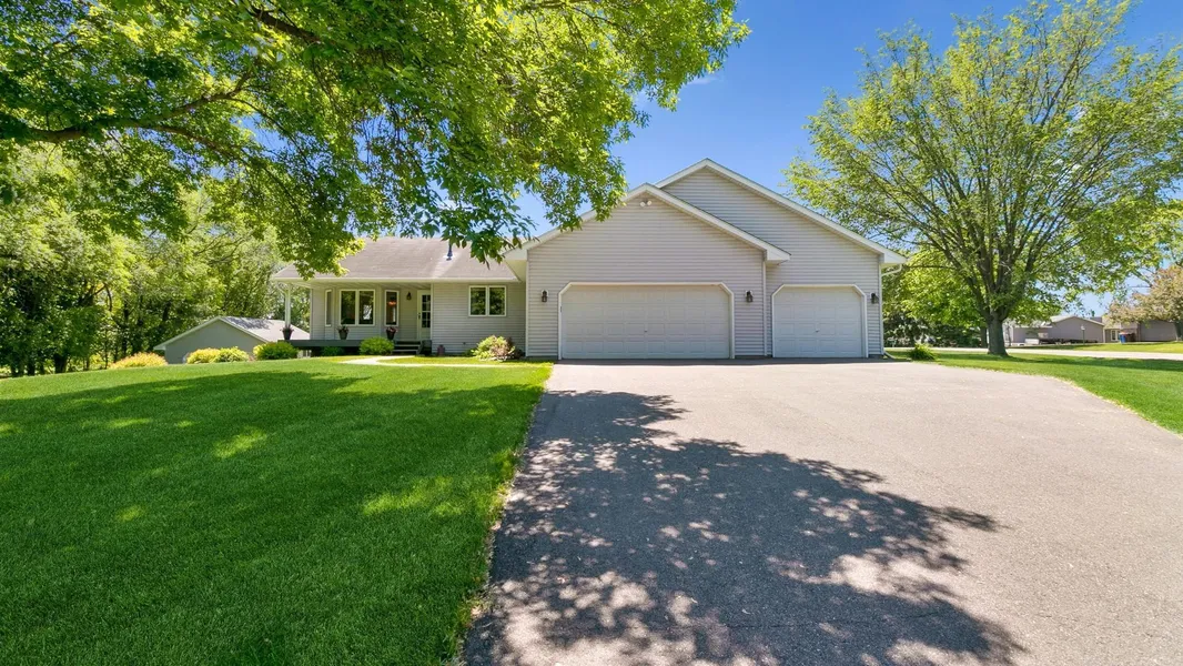 Beautiful 1 level living, 3 bedrooms and 2 baths and laundry all located on main level, huge lower level family room, private master suite with walk-in closet and private bath, granite, walkout basement on 1.3 acre lot, stainless steel appliances, over-sized 3 car attached heated, garage with additional 8x13 storage space, bonus 24x24 detached garage, located in award winning St. Michael School district.