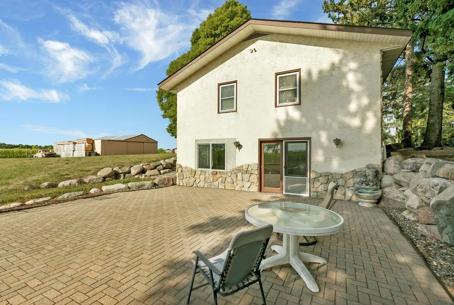 Great opportunity to own 1.33 acres minutes from Maple Lake. Rambler style home with mature tree setting and room for all your belongings. Wake up to your summer coffee on the paver patio overlooking the corn fields with your own personal pond. Option for wood burning stove and/or propane to keep you warm through the Minnesota winters. Workshop with covered parking and oversized 1 car garage. Three bedrooms with upgraded primary bathroom upstairs and fourth bedroom and full bathroom with great room in the walk -out downstairs.