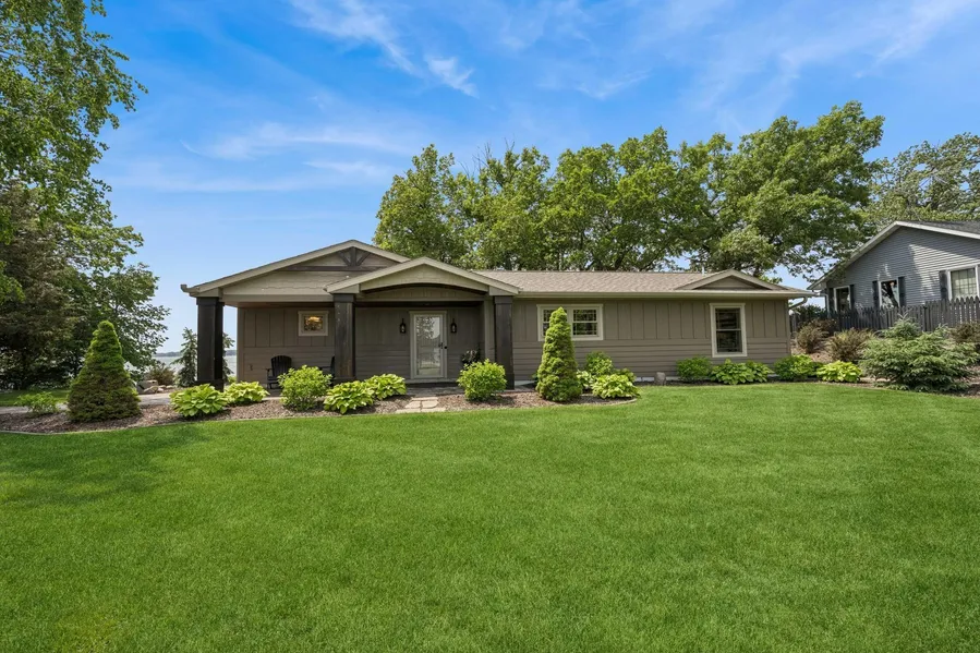 Just steps from the water, this remarkable west-facing home offers 150 feet of prime shoreline on Sunset Point -located on the highly sought-after peninsula of Sugar Lake. With panoramic views stretching from east to west, nearly every room provides a front-row seat to lake living. Built in 2020, this thoughtfully designed one-level home offers 3 bedrooms, 2 bathrooms, and beautiful lake from every room except one, seamlessly blending comfort, style and natural beauty. The open-concept layout includes a bright and spacious living area, a well-appointed kitchen with modern finishes, and a lakeside dining space perfect for everyday meals or entertaining. The primary suite features a private bath and walk-in closet, while the additional bedrooms are ideal for guests or a home office. Take in the stillness of early mornings or watch the sky come alive at sunset-all from the comfort of your patio near the water's edge. The lake remains a constant presence, becoming a peaceful part of your everyday life!