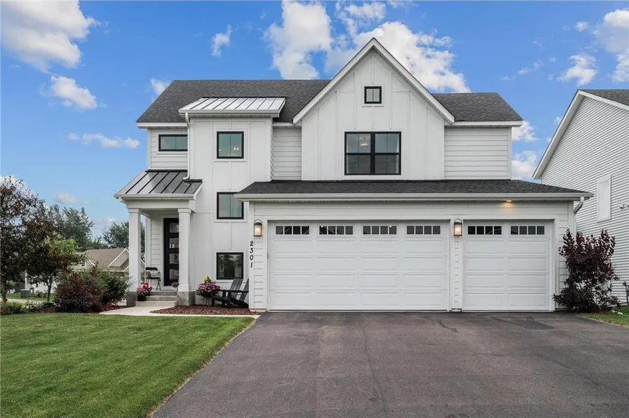 Located in a highly sought-after St. Michael community, this stunning two-story showcases top-tier craftsmanship and modern design. From its eye-catching curb appeal to the 10-foot garage doors and oversized black windows, every detail shines. Step inside to an open-concept main floor featuring engineered hardwood, a gourmet kitchen with double ovens, and a massive island — all bathed in natural light from the 8’ Pella sliding door. Upstairs, enjoy plush upgraded carpeting and a luxurious owner’s suite with a spa-inspired bath, complete with a walk-in tile shower and a spacious closet conveniently connected to the upstairs laundry. The finished lower level offers a second family room with a dry bar — perfect for entertaining — plus generous storage throughout. Tech-savvy buyers will love the whole-home Wi-Fi setup, ideal for remote work. Outside, enjoy the community pool, playground, and...