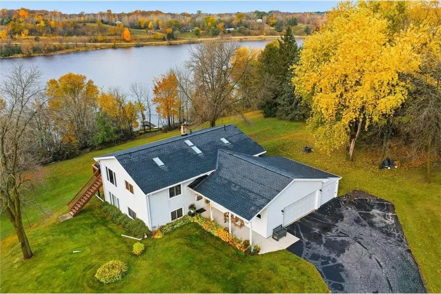 Nestled on the quiet shores of South Twin Lake, this beautifully maintained split-level home offers privacy and comfort. Built on 1.92 acres with mature trees, gardens, apple trees, and open green space, this property combines serene lakeside living with numerous modern updates. The main level features vaulted ceilings in the living room, fresh carpet (2021), updated light fixtures (2024), and a large primary bedroom with double closets, skylight, and tiled full bath. The kitchen boasts quartz countertops, painted cabinetry with new hardware, large pantry, and stainless steel appliances. Relax and enjoy the lake views from the composite deck (2022) and Marvin sliding doors (2024)! The walkout lower level offers a spacious family room with an electric fireplace, two additional bedrooms – one with new spray foam insulation and finishes – and a full bath with solid-surface countertops. The mechanical room in the lower level includes a tool bench, extra fridge, Kenmore washer/dryer, and 200 amp electrical service, and electrical service down to the lake.