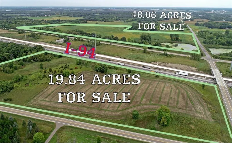 68 acres (3 tax parcels) of beautiful rolling land. With a +/- 19.84 acre buildable parcel lying south of I-94 and 2 currently tillable parcels with a water feature totaling +/- 48 acres lying north of I-94/CR 75 which have recently been granted a second building entitlement. Property is located approximately 7 miles west of Monticello or 4 miles east of Hasty at freeway overpass from CR 75 to the north and CR 111/137th St. NW to the south.