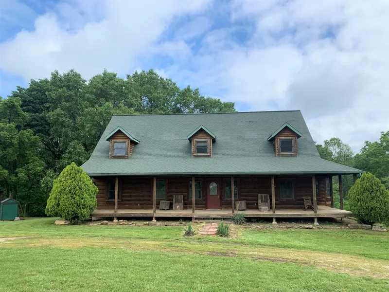 Quiet country living at it's best! Spacious 3 bed, 3.5 bath 1.5 story custom built D-style log home on 27.66 acres is tucked back off the county road. Approx. 5 miles from the 4 lane, perimeter fenced, surveyed, & good grass for livestock are several features this property boasts. Spacious rooms define this home with high vaulted ceilings over living room. Loft area upstairs with two bedrooms & full bath is a great bonus to the fantastic master suite and main level living area. The sun room can double as an office area or simply an extra great place to entertain family and friends. Breakfast nook overlooks back deck and is waiting for you to relax and enjoy the views. Garage is located in the basement w/ great storage room! Additional family room could be finished in basement. Large full bath lacks floor coverings to be finished. The covered porch is perfect to sit out and enjoy the suns...
