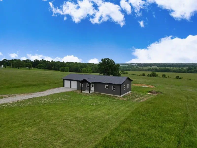 New Amish constructed home with open acreage off blacktop in the Ozarks! Step into this low maintenance home and you will find a spacious open floor kitchen/living combination featuring LVP flooring, tall ceilings, huge island, farmhouse sink with a beautiful view, and access to the attached 2 car garage. Out back you will find the covered back deck with panoramic views of your land and the Ozark hills. The 4.5 unrestricted acres offers a big yard and plenty of ground for gardening, outbuildings, farming, and country living at its finest. The single level design of this 3 bedroom 2 full bath home makes it a great fit for all chapters of life. Exposed beams on the front porch and stone accent give this home modern curb appeal. Built with pride by local Amish craftsmen and conveniently located under 30 minutes to Lebanon or Marshfield and under one hour to Springfield, Missouri. This new h...