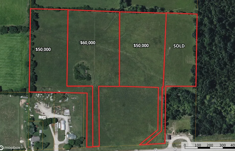 These 5 and 6 acre lots are priced at $10,000 per acre. These lot boundary lines are examples and are flexible, allowing you to adjust the acreage as needed.