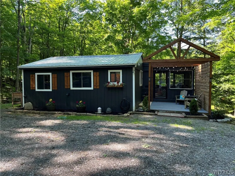 If seclusion is what you are looking for, you'll fall in love with this cozy, year round, fully furnished cottage/ ranch situated on 2.30 acre lot. Relax in the spacious living room w/ vaulted ceilings, propane fireplace plus loads of built-in cabinets. Kitchen boasts ample cabinetry, center island w/ stools, skylight and appliances. Home listed as 2 bedroom. Current owner converted it to larger 1 bedroom, but could easily be converted back. Also includes, updated bath, laundry area and mud room. Enjoy evenings on your open porch or deck overlooking the beautiful wooded surroundings. Includes stone driveway w/ room for many vehicles, camper or boat. Tractor with plow also included in listing. A 20x10 shed with concrete floor rounds out this private retreat!