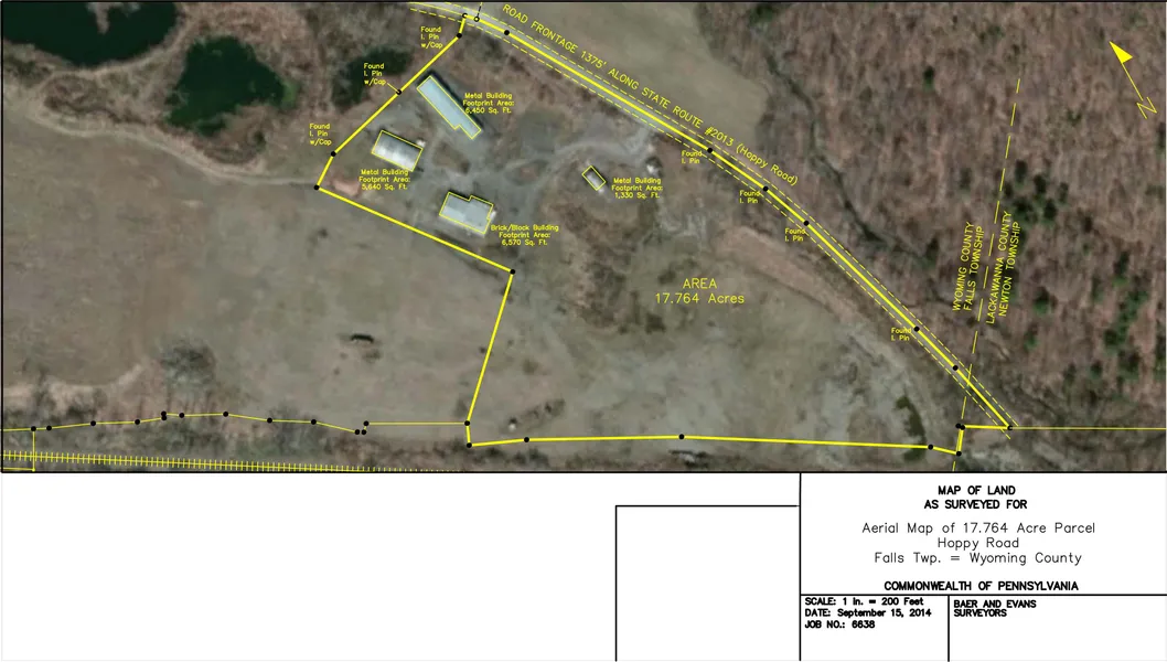For sale by owner in Marcellus shale region farmland with four commercial buildings having a combined footprint of approximately 19,990 Sq. Ft., With 1,115 of railroad frontage on 17.764 acres, in Northeastern Pennsylvania, Southeast Wyoming county, Falls township, Pennsylvania 18615