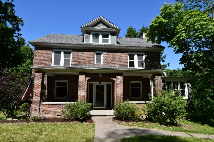 RARE find 2400 +sq' brick 4 square circa 1940s home on 1+acre lot. Amazing restoration of patterned hardwood floors & wood work throughout the 1st & 2nd floors. Modern kitchen w/ granite countered, new cabinetry & SS appliances bring entertaining ease. Living area boasts a brick fireplace w/side built ins. 15 lite original french doors open from foyer to dining and living areas. Large family &