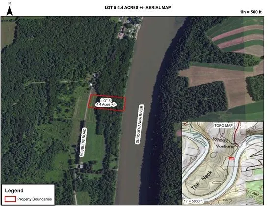 The River Property is 4.4 acres in Northeastern Pennsylvania, Northwest Wyoming County, Washington Township, with approximately 273' /- feet of Susquehanna River (the Susquehanna ) frontage and located nearby to 948 acres of protected nature preserves. Comes with Pennsylvania DEP-approved on-site sewage module and township road access permit. The Susquehanna River is rated one of the five best Smallmouth Bass rivers in the U.S. by BassMaster Magazine (see article attached). Great fishing right out your back door. The River Property is zoned A-1 agricultural, has abundant water supplies on site and from the Susquehanna, features well drained soils, good aeration, and eastern facing moderate sloping site with proximity to the Susquehanna. The River Property is situated in USDA 6a Hardiness Zone and is surrounded on three sides by the Susquehanna creating a microclimate that made the area a major fruit growing region 50-75 years ago. Lot comes with Pennsylvania DEP-approved sewage module and township road access permit.