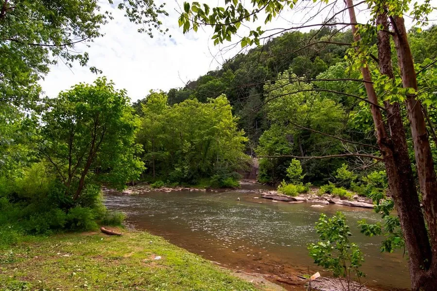 Guyandotte River Kayak at Pinnacle Creek Landing on the Guyandotte - Land and Equipment Package. This 0.78-acre parcel includes a small sandy beach and more than 300 feet of wooded embankment on the Guyandotte River. Now operating as a basecamp for a kayak outfitter, it includes a camping area, an office shed, an equipment storage pavilion, and a 0.11-acre gravel lot with river access. The outfitter business and equipment, including a 15-passenger van and 25 kayaks, will convey. The property provides easy access to the Hatfield McCoy Trails, three miles from the Pinnacle Creek trailhead at Pineville, Wyoming County. More than 300,000 vacationers visit the region annually, touring its trails, the river, and nearby Twin Falls Resort State Park. Some of the property is within the floodplain of Guyandotte, and permanent construction thereon will require permitting.