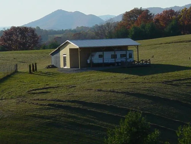 40' RV shelter with cabin and garage on a beautiful 4.4 acre tract. Land is 100% open and lays very well with mountain views, private well, septic system and a dead drop for the camper spot. 32x16 cabin has heat, all appliances and is very cozy to stay in. Garage is 40x16 with a concrete floor with french doors leading out the side and also connects the cabin to the 40x16 camper spot. This is a must see if you wish to build a home or have a get a way.