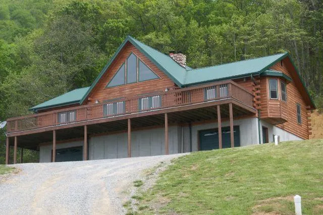 Custom built log home with spectacular long range views overlooking Max Meadows, Fox Mountain, Conner Valley, Poplar Camp Mountains and the mountain line that follows the New River. The home offers 3 bedrooms, 2.5 baths with split bedrooms and an open floor plan with a rock fireplace that separates the kitchen/dining room from the living room. The rock fireplace offers gas logs on the living room side that can be converted back to wood burning with a thimble on the kitchen side for a cook stove. Home has 3/4 oak floors throughout with tile in the bathrooms. The kitchen has custom cabinets with stainless steel appliances with range/oven being in the island. Large laundry off of kitchen. Over sized staircase leading to basement. Great Room in basement also has a rock fireplace with wood stove that will convey with the home. Wrap around composite board deck allows you to enjoy your views! The rooms on the front of the house offer French doors with blinds inside the glass.