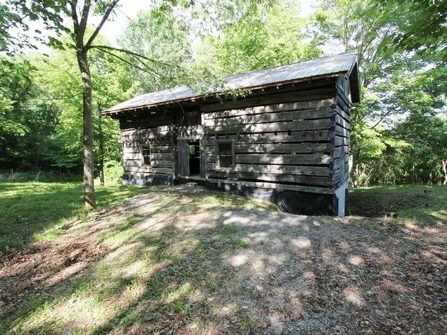 This is the real thing, a poplar and oak log home transported from Ashland Kentucky and carefully reconstructed. It's on a tranquil 5 acre wooded tract in a great neighborhood with protective covenants. It is very private and picturesque. The home is 18x46 and has roughed in electrical and plumbing, full poured concrete basement and metal roof. Stone, brick, wood flooring and many of the materials needed to complete the project are on sight and convey. Careful attention has been paid to keeping with homes history while planning for modern conveniences. The property has electric on sight and was previously permitted for a well and septic.