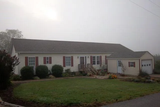What a charming home in like new condition inside and out. This home is offers natural sun light throughout with large rooms, split bedrooms and closets galore. Den is cozy with a built in entertainment center and a rock fireplace with gas logs and hardwood floors. 2 Bedrooms and bath off of den that would offer privacy for guest or the children. Master bedroom has an additional room that is being used for an office but would make a great nursery or exercise room. Large master bath with double lavatory for him and her, a jacuzzi tub and shower with a 10x6 walk in closet that circles back out into the office. Kitchen has cabinets galore for storage and an island for additional work space. Dining room gives you great access to mountain views with French doors that go out on the deck for your outside enjoyment. Nice landscaping around the home that offers a pop of color and fresh mulch with rock sidewalk in the front and around the outbuilding/garage.