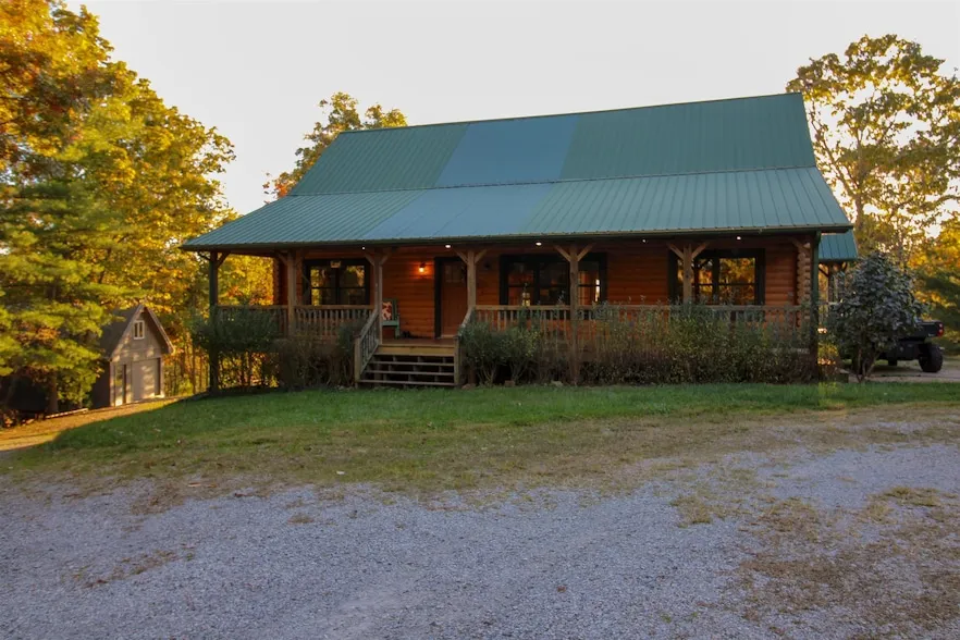 NOW is your chance to own a mountain retreat. Nestled amidst 25 acres of serene beauty, this log-built home offers a tranquil escape. Its 1803 square feet of living space features cathedral ceilings, an open loft, and a primary bedroom with a private office. Inside, a stone fireplace, wood pellet stove, and heat pump provide warmth and comfort, while the dine-in bar and solid surface countertops add a touch of modern convenience. Outside there is a circular driveway. Plus, a detached garage/workshop, full basement, mature fruit trees, covered front porch and rear deck offer ample space to relax and enjoy the breathtaking long-range views. The potential for horses and livestock is here. Great lower pasture would be very possible. Whether you're a nature enthusiast, photographer, or outdoorsman, this property's private walking trails, proximity to outdoor activities including the Jefferson National Forest, make it the perfect retreat.