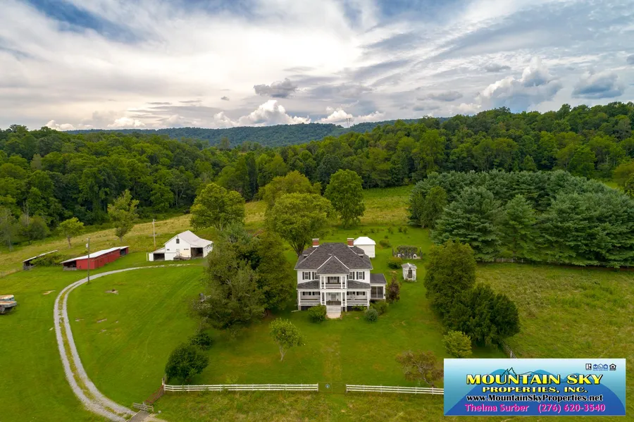Step back in time with this gracious 2-story home which stands proudly on its large 75 acre plantation farm. Built in 1908 home features large rooms throughout the home HW flrs Built-ins, large pantry, LR, DR, master bedroom with fireplaces. Plenty of outbuildings for storage includes smokehouse, carriage building for parking. Barn, storage building, spring house. Garden area fruit trees, grapevines the 1 acre lot home sits on is all fenced. Separated pastures are fenced and gates with a stream running through the property. Newer furnace. Wood stove in basement. Porches upper level and lower level. Some original shutters on windows. Side screened in porch enjoy the views and wildlife. Property does have it own lot leading to rd that could be a private drive if desired. Horses welcome Sold AS IS Hot water radiator heat (Oil) . 45 acres wooded