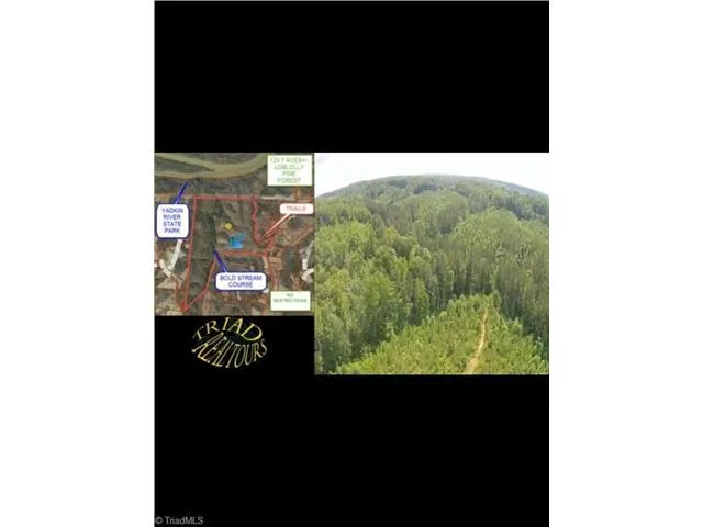 Broker owned. Great investment property. 700+/- feet of paved road frontage. Ideal for residence, recreation, timber, hunting & farming. Planted in loblolly pines. Stream on property. Several springs. Great water sources. Property has views and vistas. Zoned RA- no restrictions. Joins Pilot Mtn. State Park, only 15 minutes from Winston Salem, NC. Owner will consider selling in smaller parcels. Priced at approximately $4250.00 per acre.
