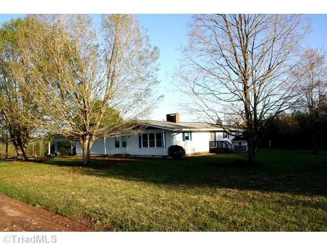 This rambling, one level home has large living areas. Wood floors in living room, entry and master bedroom. Large den and dining combination with fireplace. Sliding door from den to large side yard. Two decks and 1 rear covered porch. Serene views of neighborhing farmland and distant Pilot Mountain and Hanging Rock. New heating system 2012, recent tankless hot water heater. Private, rural living within 30 minutes to Winston-Salem, 20 to Elkin. Motivated seller.